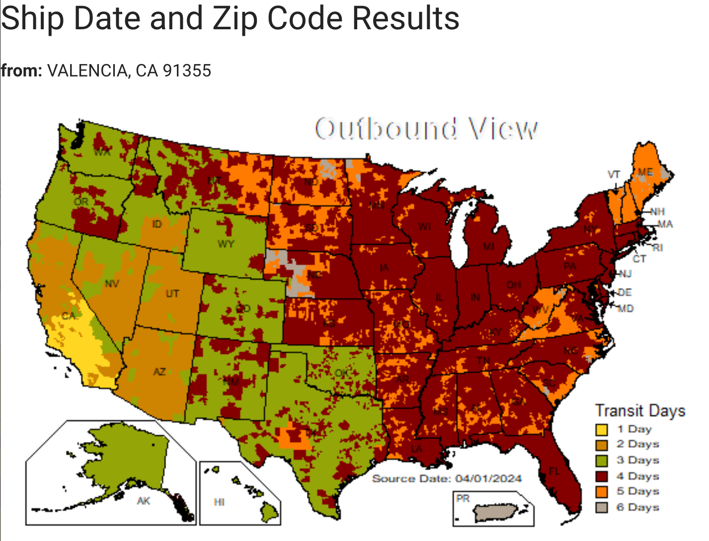 You can view this map to see approximate business day transit times depending on your destination location.